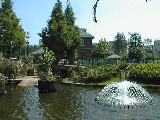 などの樹木、中央の池には、西オーストラリアの州鳥(里鳥)がいます。