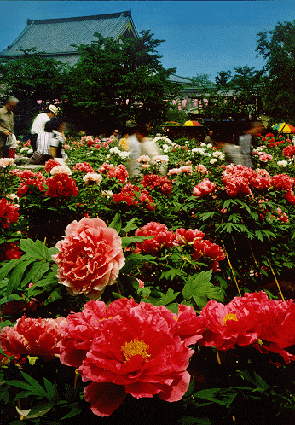 境内の6ケ所には70種、4500株のぼたんが植えられ、「ぼたん大師」