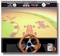 定番のドライブゲーム ハンドル操作でくねくね道を進んでいく こちらはもう少し後の時代のゲーム
