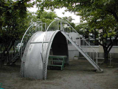 前述のようにお化け煙突の一部が足立区立元宿小の滑り台となって