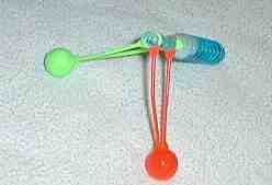 が二本垂れていて、紐の先に硬質のプラスチックでできた球(直径4センチ)が