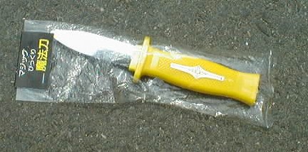 刺すと刀がひっこむ。バネの力で戻る。昔からある駄おもちゃだが、何が楽しいんだろう。。。当時は10円だったと思うが、現在は100円。