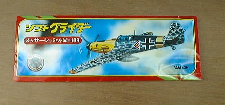 組み立て式のグライダー。最初のうちはよく飛ぶのだが、本体と翼の部分がグラグラになってしまうと、おしゃか。当時は20円だったかな?5円の木製のやつの方がよく飛んだ。現在150円。