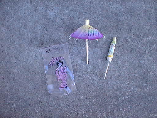 ちゃんと骨組みがあって、開いたり閉じたりもする。どこかの甘いもの屋のあんみつにこれがついていた。