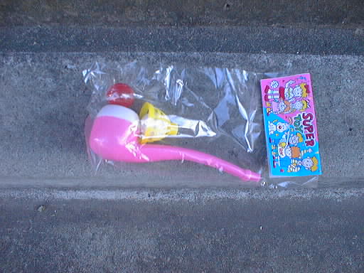 これまた、駄おもちゃの定番。息を吹くと玉が空中にふわふわと舞い上がる。これを友達とどちらが長く浮かせることができるかを競い合うんだ。重力に逆らった点子供にとって楽しいんだろう。