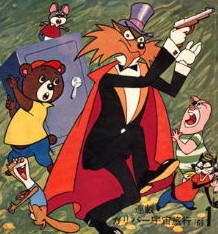 パンチ(熊)、タッチ(ねずみ)、ブン(いたち)とガリガリ博士(狼)との戦い。♪金もないけど、泣くやちゃないよ、いやなやちゃドンドンやっつけろ |