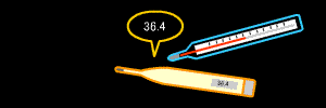 アナログ式の体温計は、「37℃」の数字が赤くなっていて、これを越えると
